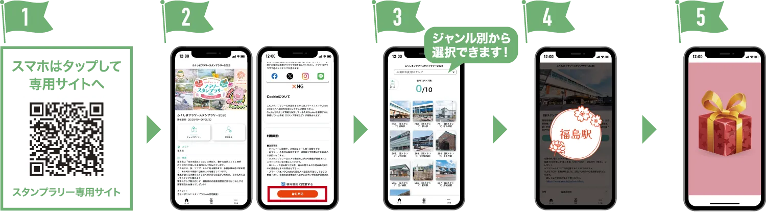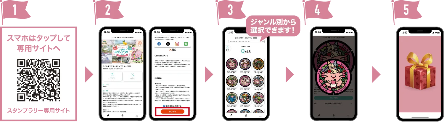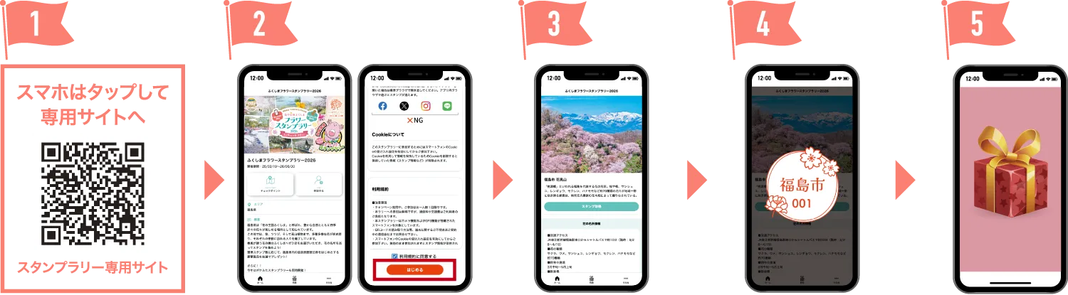 スマートフォンのGPSを使って、フラワースポットに近づきスタンプを獲得してください。